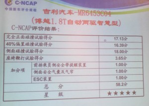 吉利博越以58.2分获C-NCAP五星安全评定